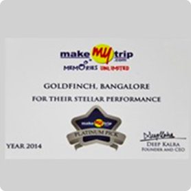 Goldfinch Hotel Bangalore has been awarded for their stellar perfromance by Make My Trip in 2014