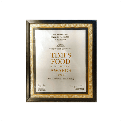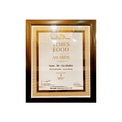 Sana-Di-Ge Delhi has been awarded as Best South Indian - Casual Dining by the Times Food & Nightlife Awards